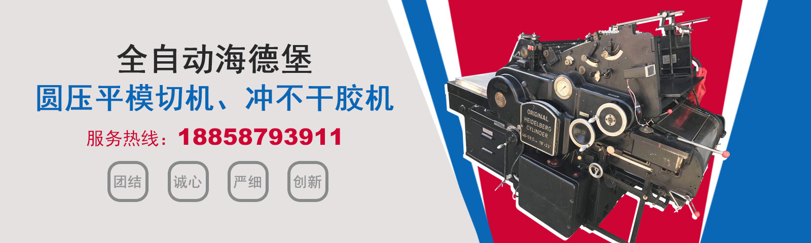 瑞安市恒柯機械廠(www.wzhkjx_com.fsndpgi.cn)是國內專業制造銷售全自動模切機,全自動燙金機,圓壓平模切機,圓壓平燙金機,滾筒燙金機,沖不干膠機,海德堡凸印機.銷售的產品系列規格齊全,產品具有速度快,壓力均勻,套印準確等特點。